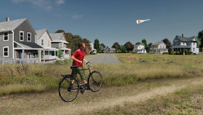 When I was about 10 years old, I was riding my bicycle on a balmy late afternoon in my hometown of Rockville Centre, Long Island, NY and had just taken a shortcut on a dirt path connecting two streets and paused to recover from the jostling and glanced up the road to orient to my new path. At that instance in the sky just above the horizon I suddenly saw a fiery meteor streaking into view, in an almost horizontal path from right to left on a scale about a quarter the size of TV animations of the meteor that destroyed the dinosaurs. It had all the characteristics of streaming trail of flaming particles and gases and at a similar speed and provided some 6 seconds to view its progress down to the point where its path was obscured by buildings that filled perhaps a third of the azamith- so I don't know if it vaporized in mid-sky or continued a path below the horizon.