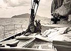 She reported as we suspected that they were treasure hunters but they had not revealed what success they'd had. Sarah wanted to make a dive even despite my caution that white shark had been caught in the Med, so I figure she had earned her own adventure and outfitted her for a dive. After she was retrieved I made a quick dive to attach a halyard to the bell with which we winched it aboard. With my charter funds running low we had to quit Keith Reef that day and head back to Malta.