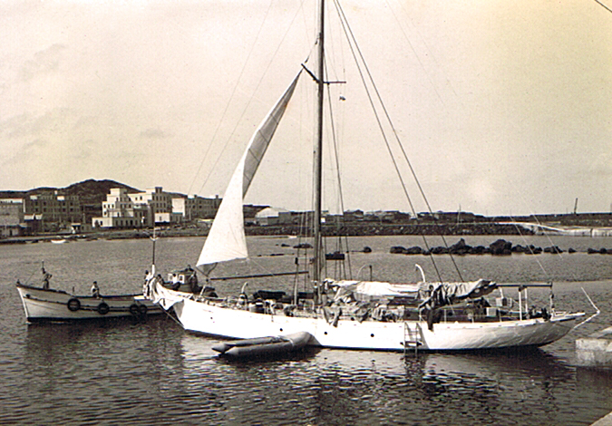 First destination was to head for the lighthouse at Cap Bon, Tunisia as the plan was to take a bearing on a line drawn between it and where Keith Reef lay on the chart. We had to leave the Cap at night, keeping a course by the light and as daylight broke and the guide light faded, hope to keep on course until we could see breakers on the reef. The wind had picked up so that everything worked perfectly and it was my sharp-eyed companion who actually spotted the breakers first. What seemed an adventure unfolding perfectly suddenly met a totally unexpected hitch...the skipper of Tiercel and his Japanese wife mate were adamant that they could not anchor in these treacherous bottoms nor could